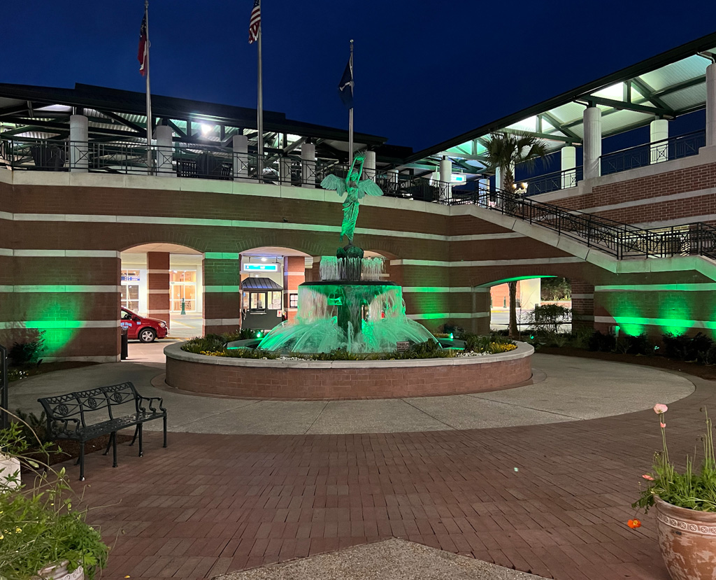 SAV lights up green in celebration of the Savannah St. Patrick’s Day 200th Anniversary.