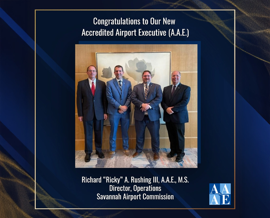 Congratulations to Richard “Ricky” A. Rushing III, A.A.E., M.S., Director of Operations, Savannah Airport Commission, who successfully completed the Final Interview and earned the coveted Accredited Airport Executive (A.A.E.) designation.