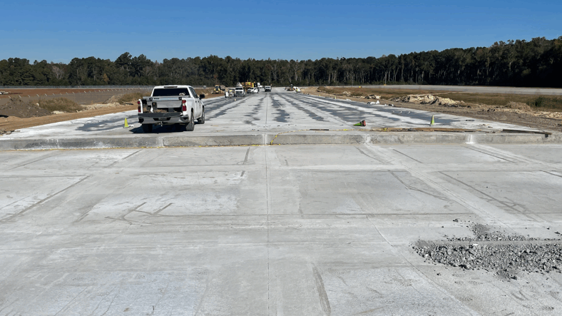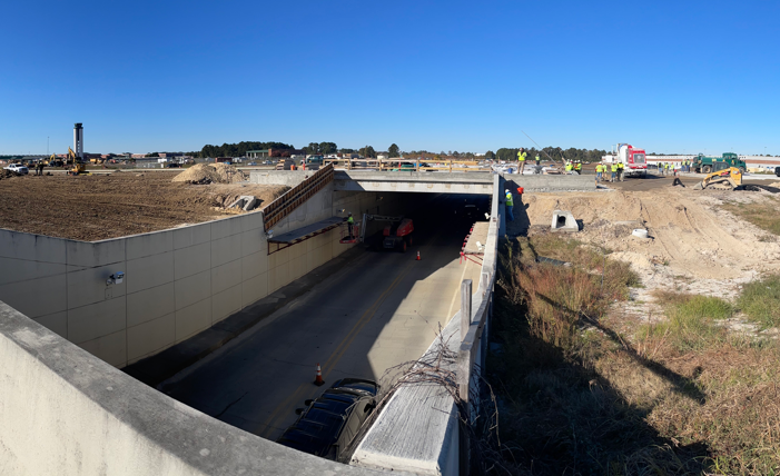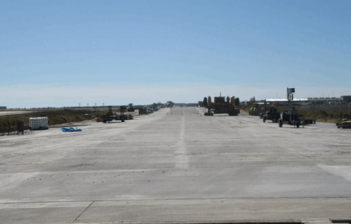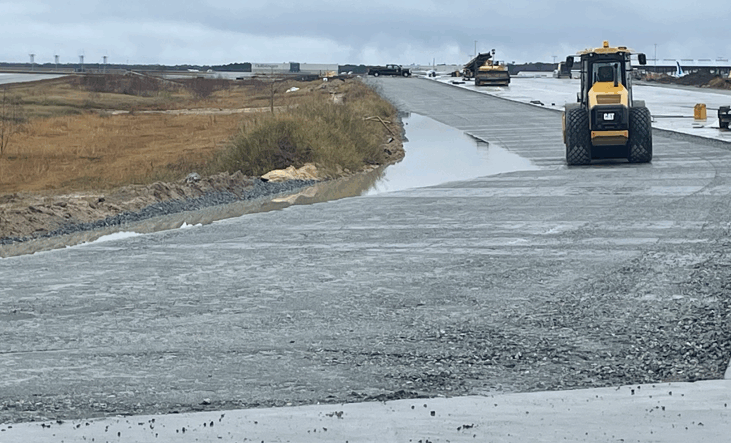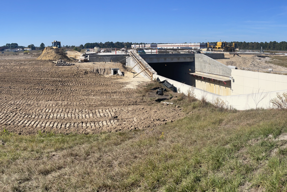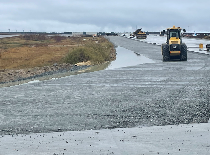Taxiway G Extension will allow simultaneous ingress and egress to the new Air Cargo Facility. The project involves the construction of approximately 13,500 square yards of new taxiway pavement, installation of taxiway lighting, signage, drainage improvements, and marking improvements, and a new bridge across Gulfstream Road.